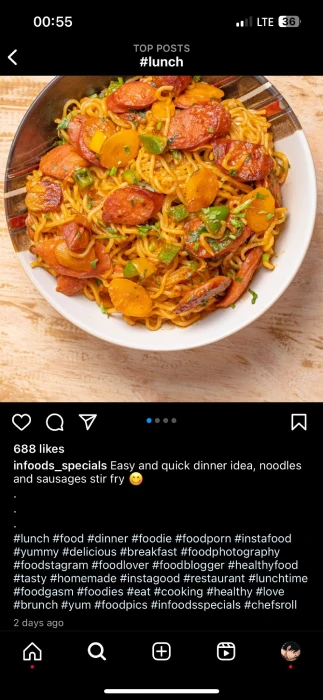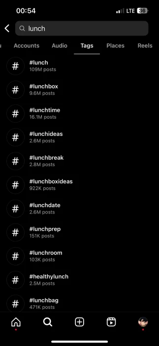 Second Most Liked Lunch Hashtags for Tiktok and IG