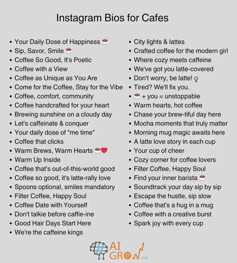 1 thought on “140+ Best Cafe Bios for Instagram: Short, Cute+ Examples”