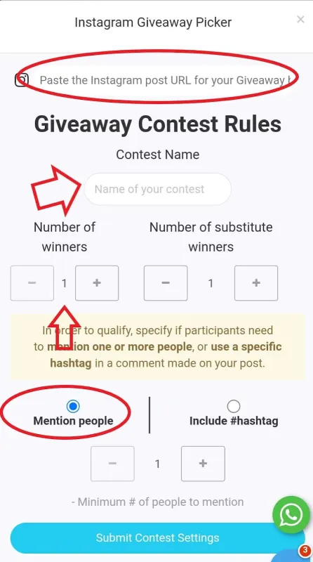 - Next, you need to enter the giveaway post URL you want to run, your contest name, and the number of winners.
