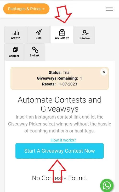 - Go to the dashboard, tap Giveaway Picker, and click on “Start a giveaway contest now”.