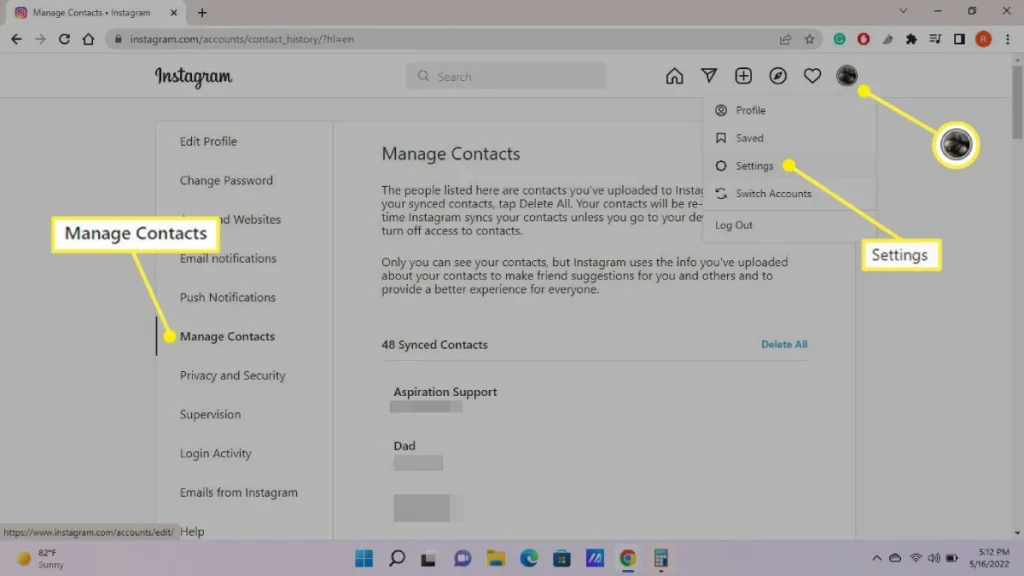 When you sync your contacts, it might upload them to Instagram’s servers. If you don’t want this to happen, you can turn it off in your settings.