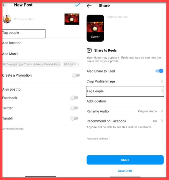 - Tap on the “Tag People” option and select the user you want to collaborate with.