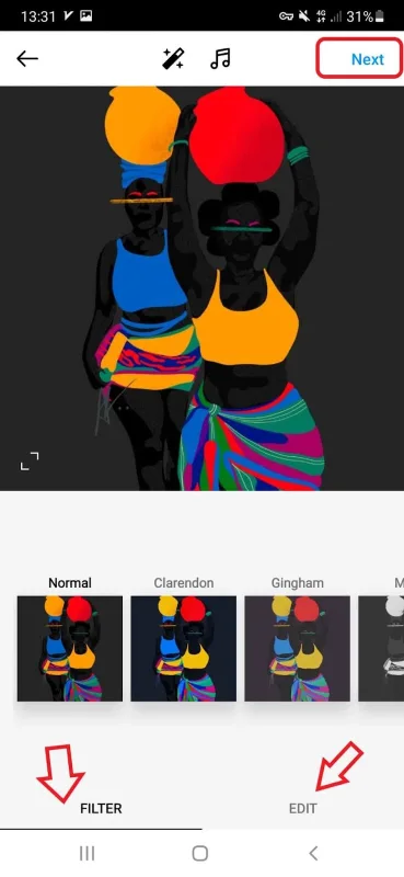3. Here, you can edit your photo or video by adding Instagram filters or effects.