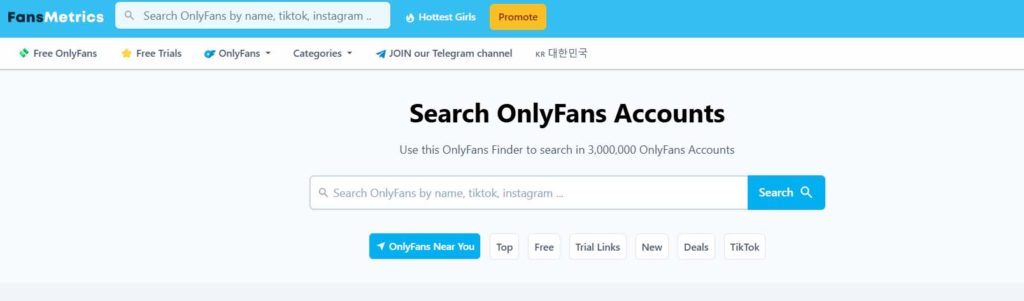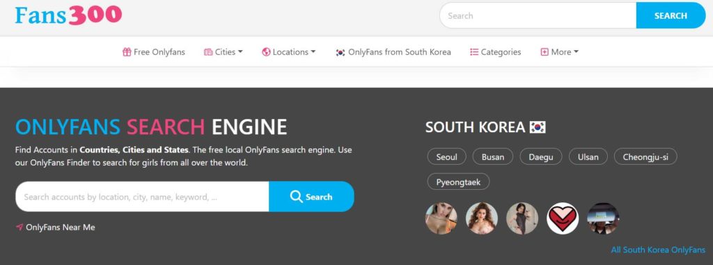 Another search engine you can use to find your favorite OnlyFans creator is Fans300.com. First of all, this search engine shows you a list of creators based on your IP. So, if you are from Korea, you can see Korean OnlyFans creators before even you try searching.
