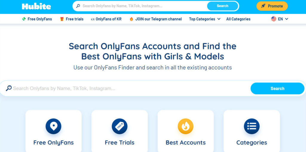 With over 2.5 million OnlyFans creator accounts, Hubite is another popular name on the list of top OnlyFans search engines. Using this tool, you can search for OnlyFans creators by name, keywords, social media usernames, and more.