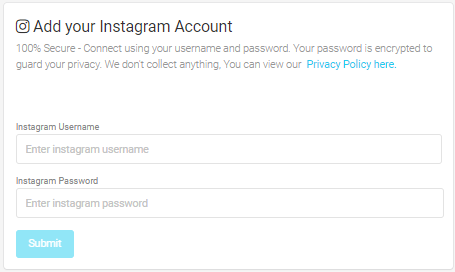 To do so, on your dashboard, click on “Add Instagram Account” and simply enter your IG username and password. For some accounts, Instagram may send a 6-digit code that AiGrow will ask for.