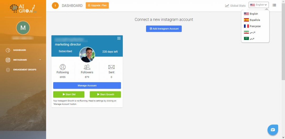 When you are finished with the connecting step, you can see your account on the dashboard. With AiGrow, you also the ability to add multiple Instagram accounts.